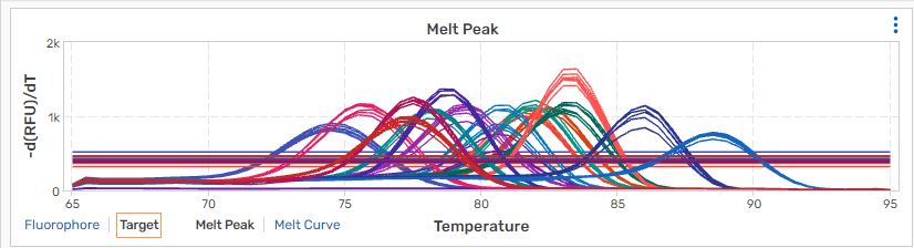 | ● | View the negative first derivative of the RFU data per temperature for each well (melt peak) |
