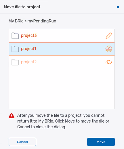 Important: After you move a file to a project, you cannot return it to My BRio.