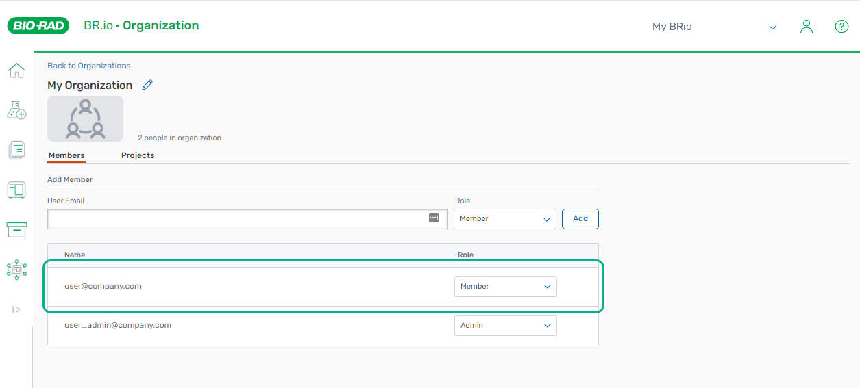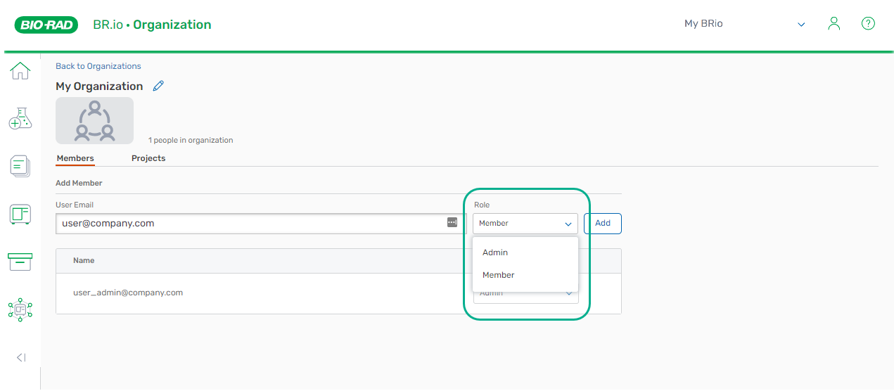 Tip: Bio-Rad recommends assigning two Admins to an organization.