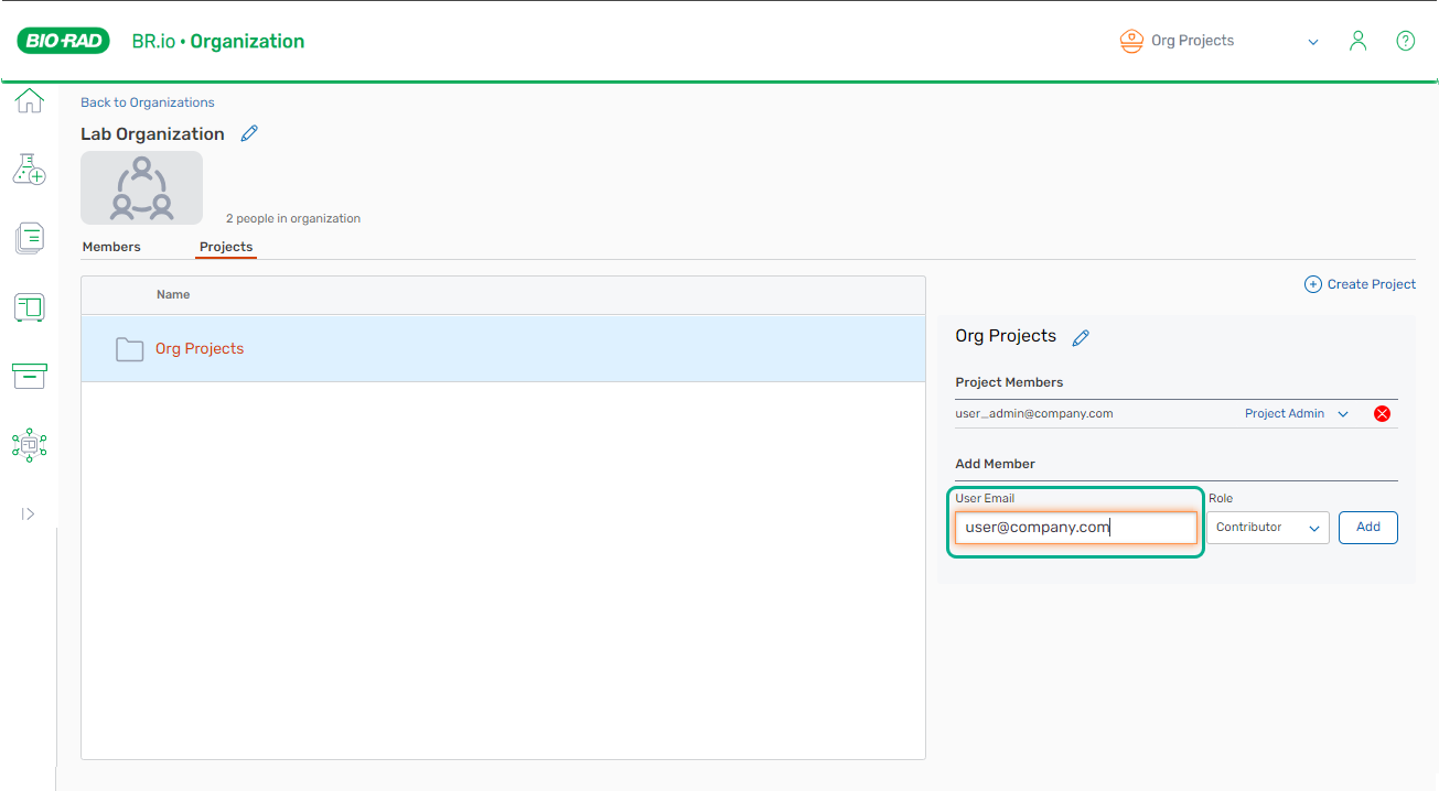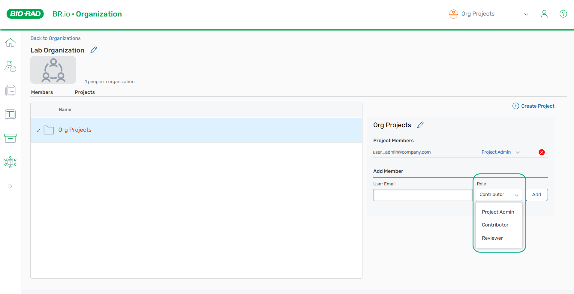 Tip: Bio-Rad recommends assigning two Admins to an organization, and two Admins to a project.