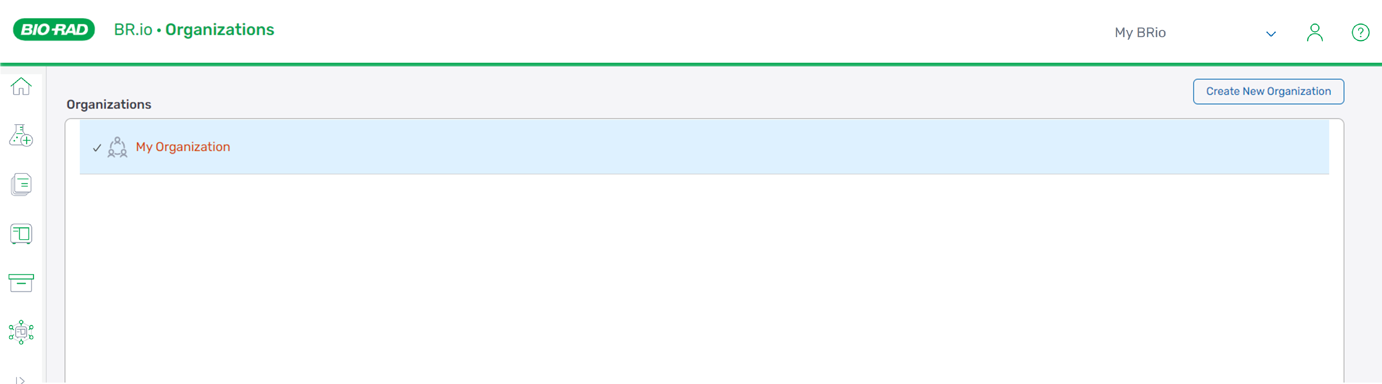Important: After creating an organization, BR.io assigns the user an organization Admin role. For more information about user roles, see Adding Members to an Organization.