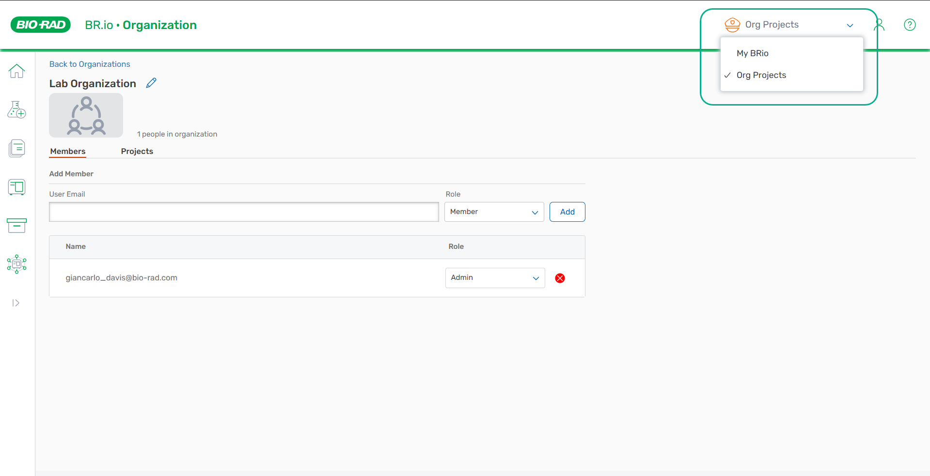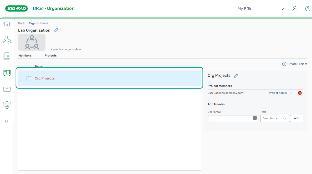 Note: BR.io recommends that the project Admin adds an organization Admin as a second Admin to each project in case the project Admin leaves the organization.