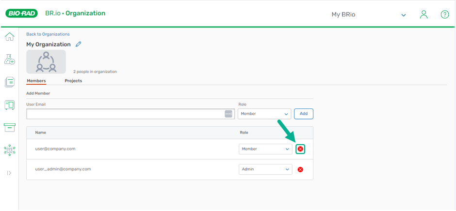 Tip: Bio-Rad recommends assigning two Admins to an organization, and two Admins to a project.