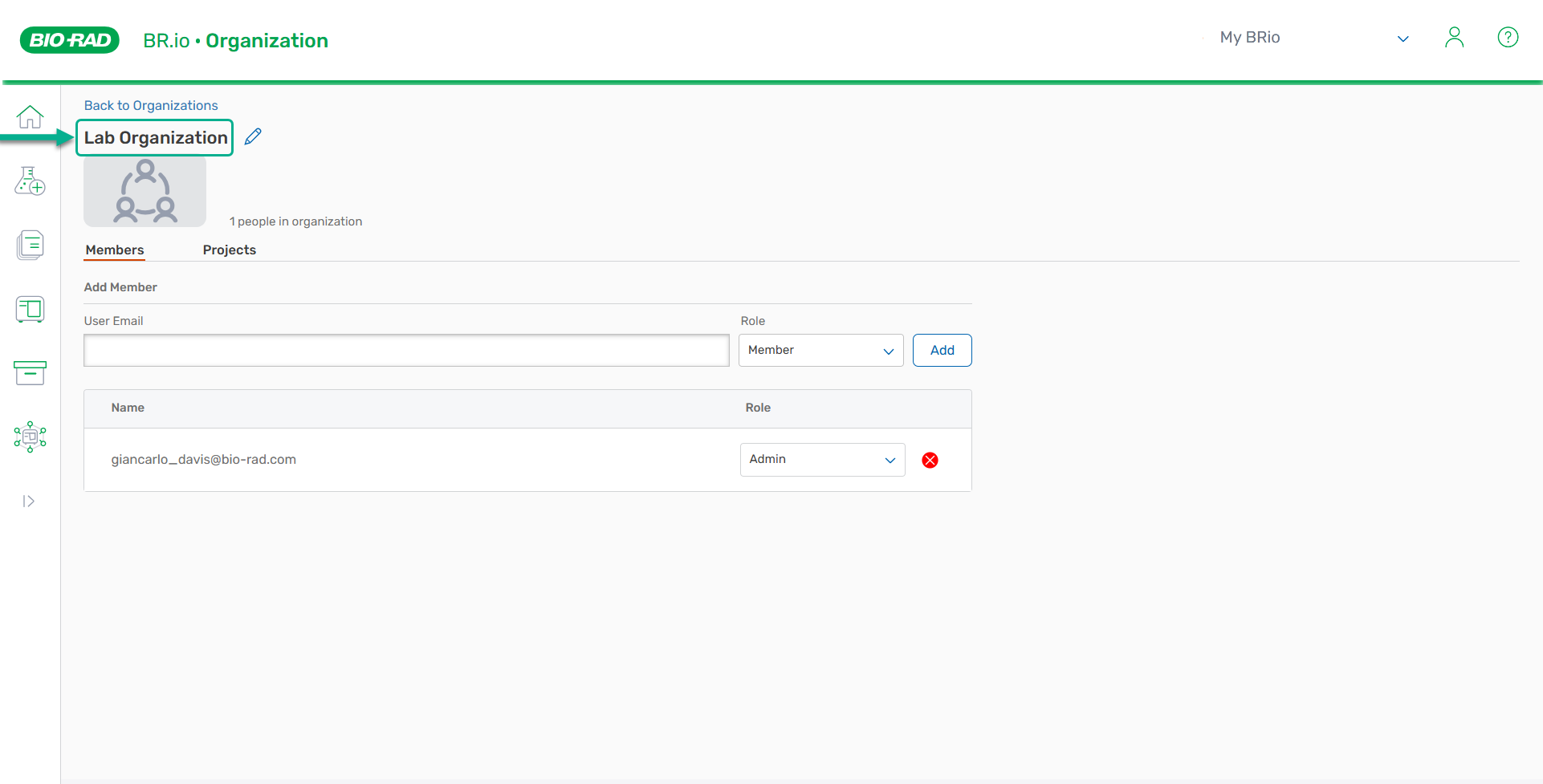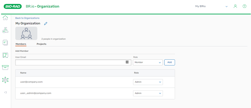 2. | On the Organizations page, select the organization. The page opens to the Members tab. |
