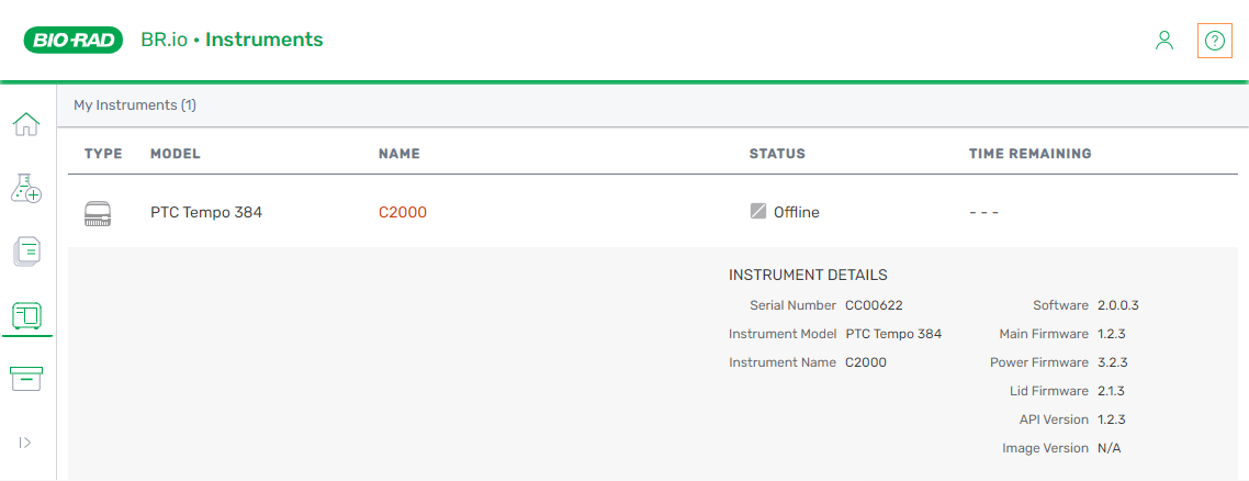 Important: If an Admin user renames the instrument after it was linked to BR.io, you must refresh the Instruments page in BR.io to see the new instrument name. The name cannot exceed 12 characters and cannot contain the following symbols: \ | / : * ? " ' ` < >