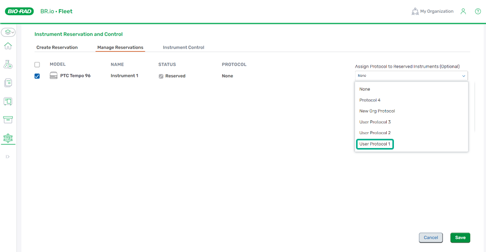 | 5. | Select the protocol from the Assign Protocol to Reserved Instruments (Optional) dropdown. |