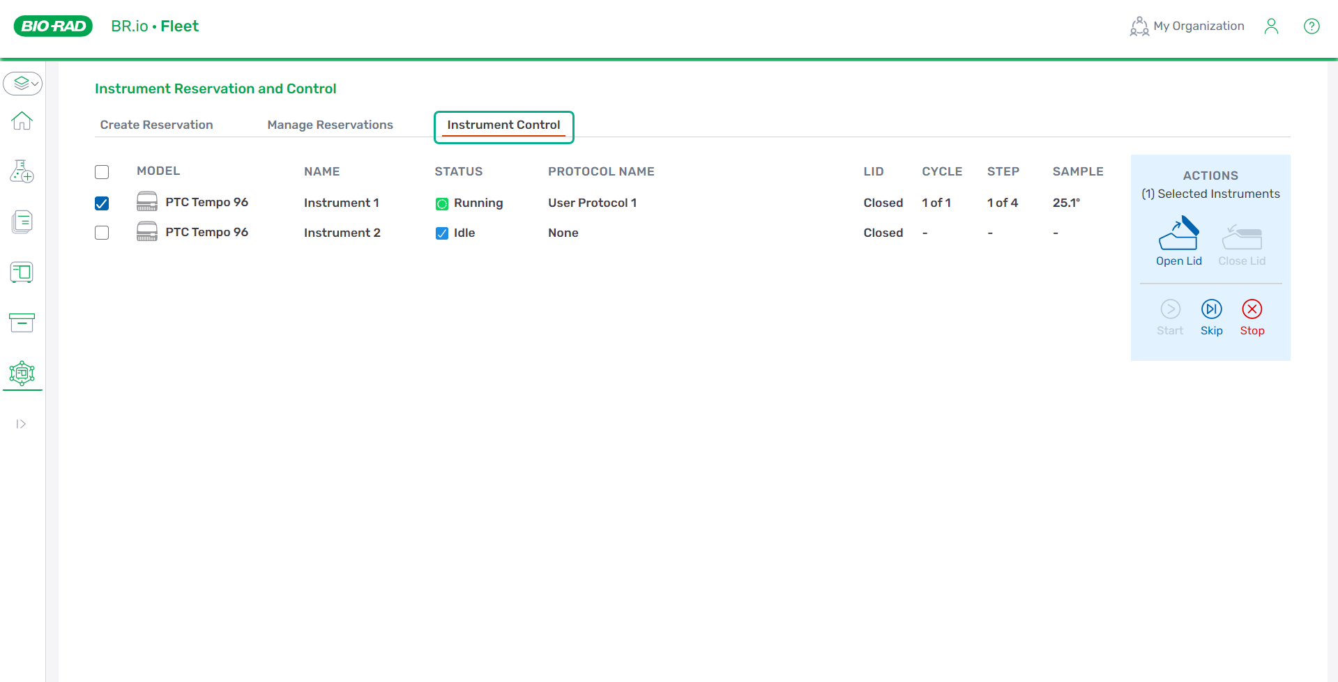 | 1. | Click the Instrument Control tab to open the Instrument Control page. |