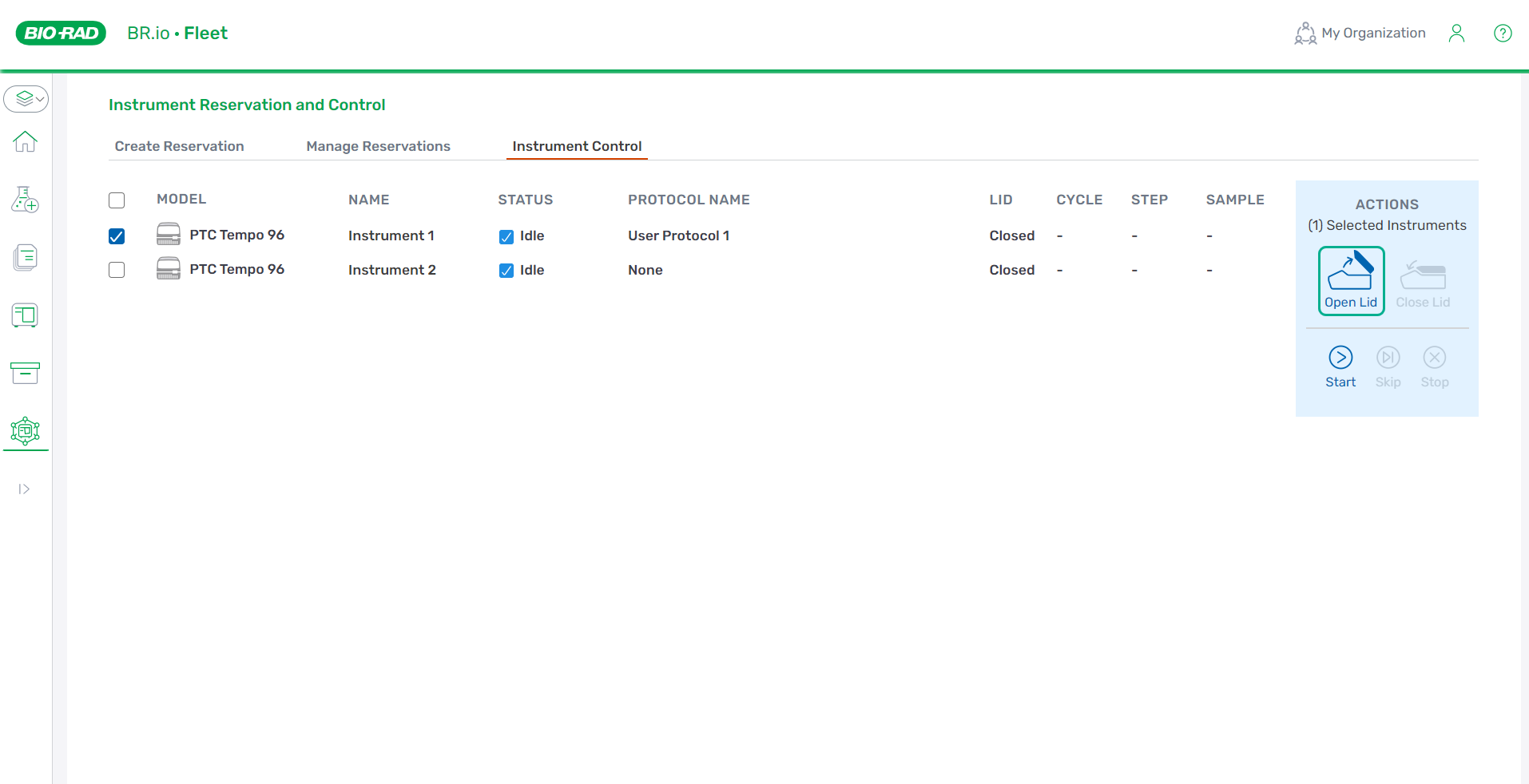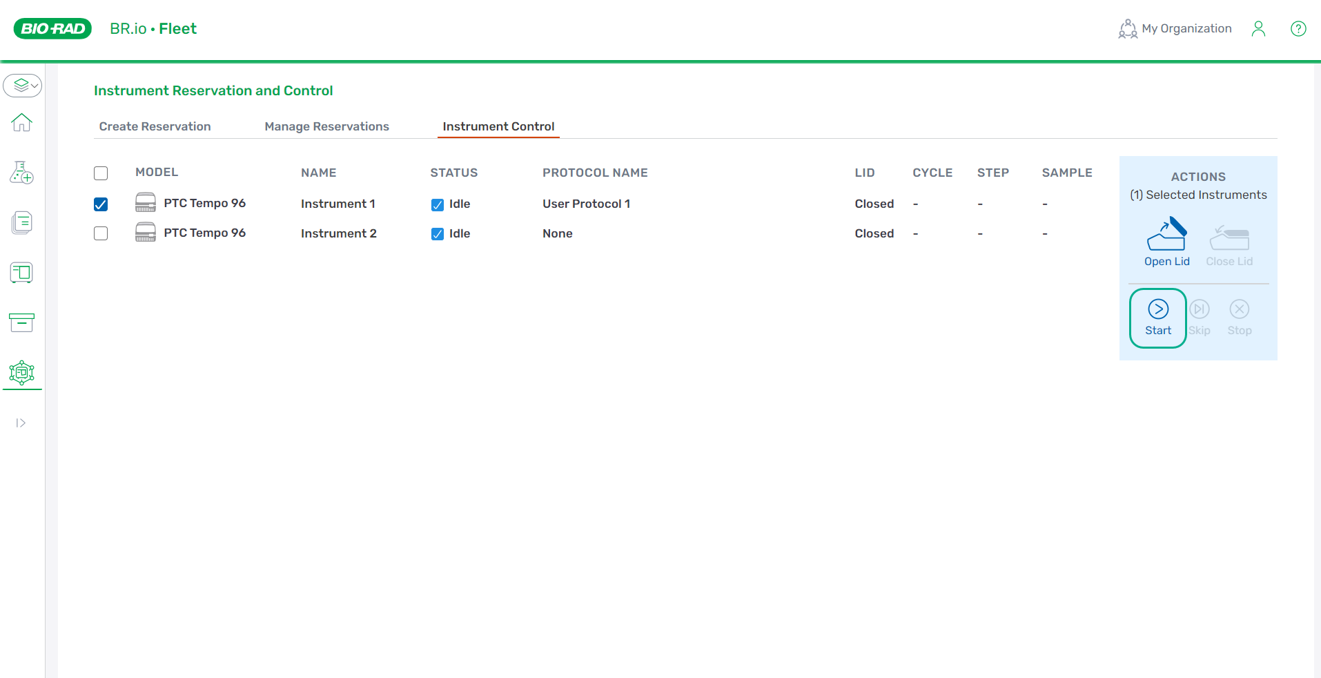 | 1. | If you haven't already done so, reserve an instrument and assign a protocol to that instrument (or to those instruments). |