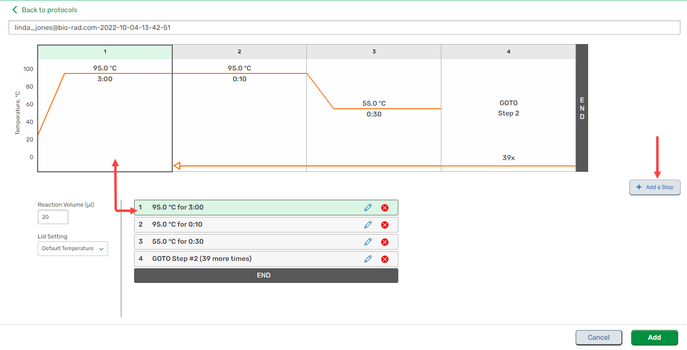 You can use the default protocol, or you can add, edit, or delete steps to create a new protocol.
