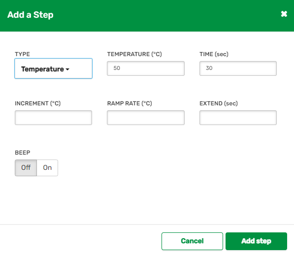 (Optional) the degrees to increase or decrease the step's temperature with each successive cycle Note: The increment is automatically set to 0 if the field is empty. |